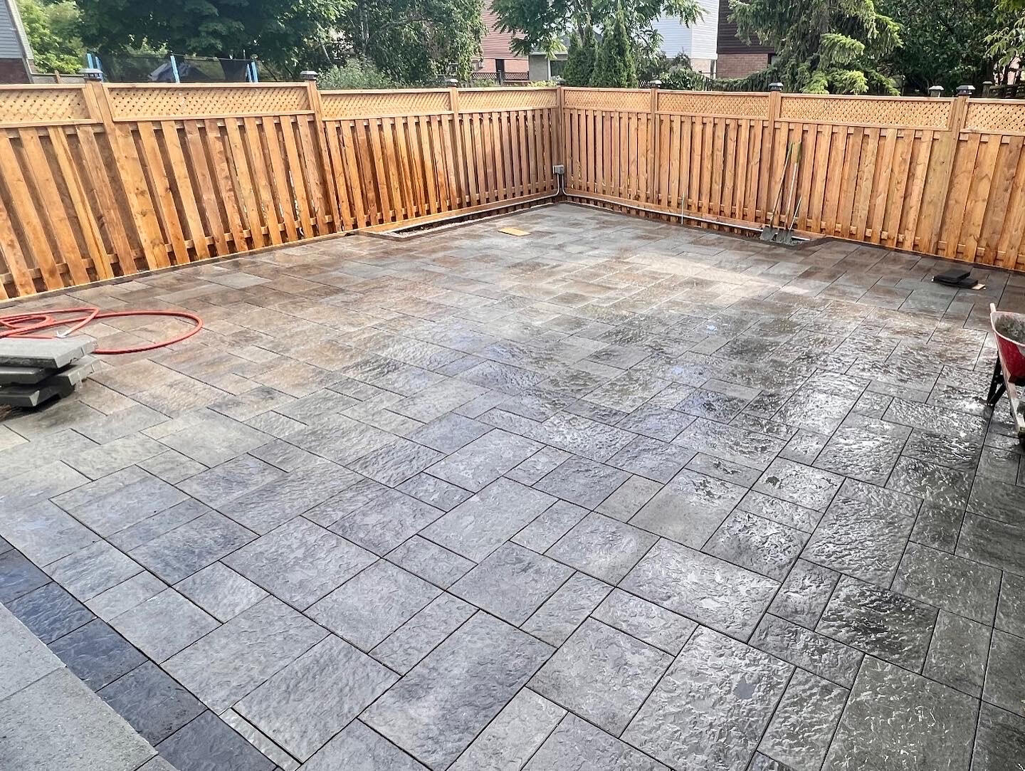 We do interlocking, natural stone, water features, sodding, fencing, driveways, walkways, patios, repairs and more.